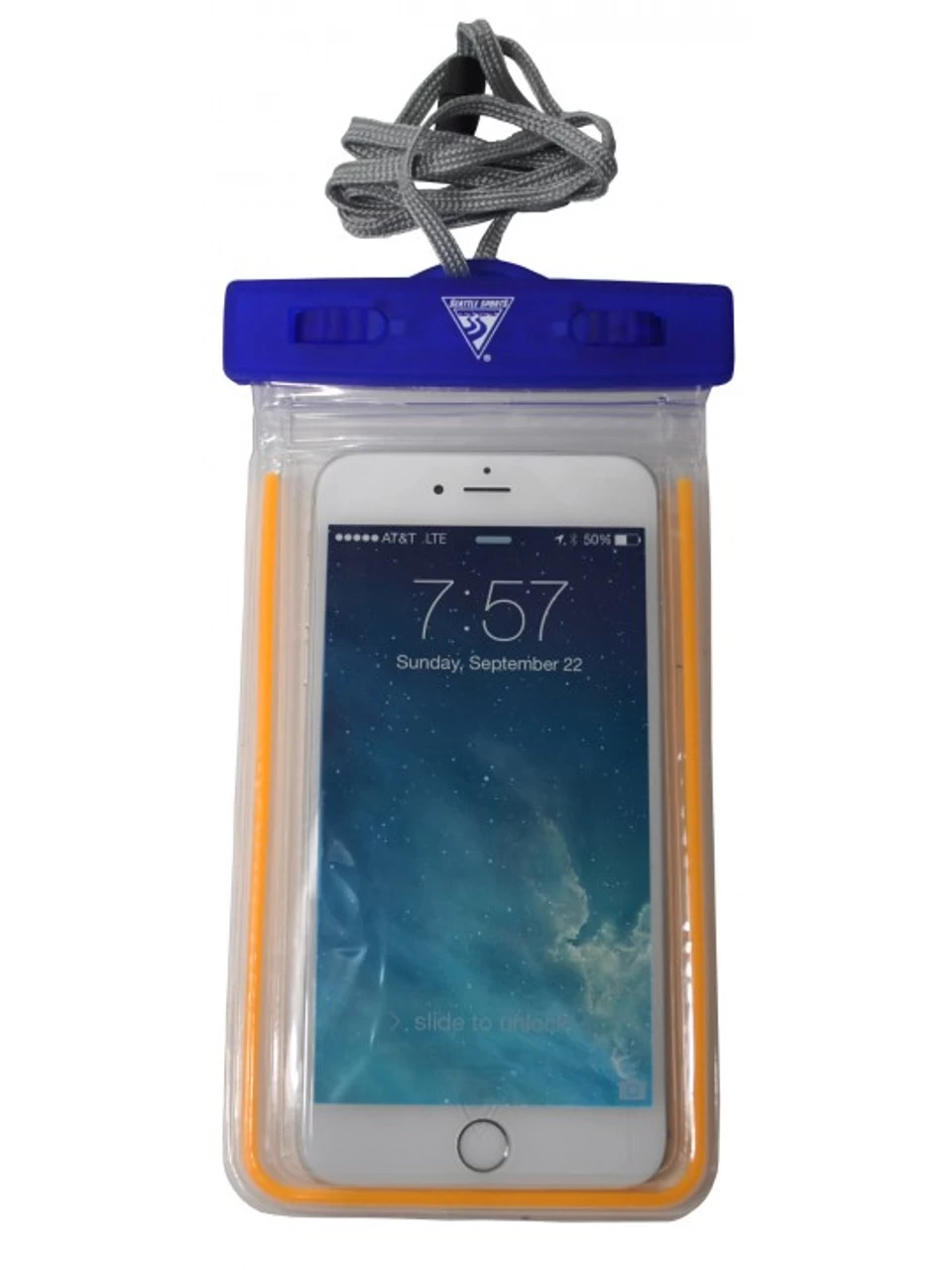 Go Deeper! Seattle Sports’s newest edition to the submersible, E-Merse™ waterproof cases will protect your phone in depths up to 30 feet! Sized to fit phones up to the iPhone® 6 Plus. The PVC-Free clear material allows you to use your phone right through the case. Secure your grip with a welded hand strap.