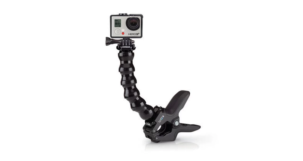 Clamp your GoPro to objects ranging in size from .25″ to 2″ (.6cm to 5cm) in diameter. Attach your camera directly to the clamp for low-profile mounting, or use the optional neck to achieve a wider range of camera-angle adjustability. Jaws securely grips irregular shapes and super slim objects thanks to its innovative design.