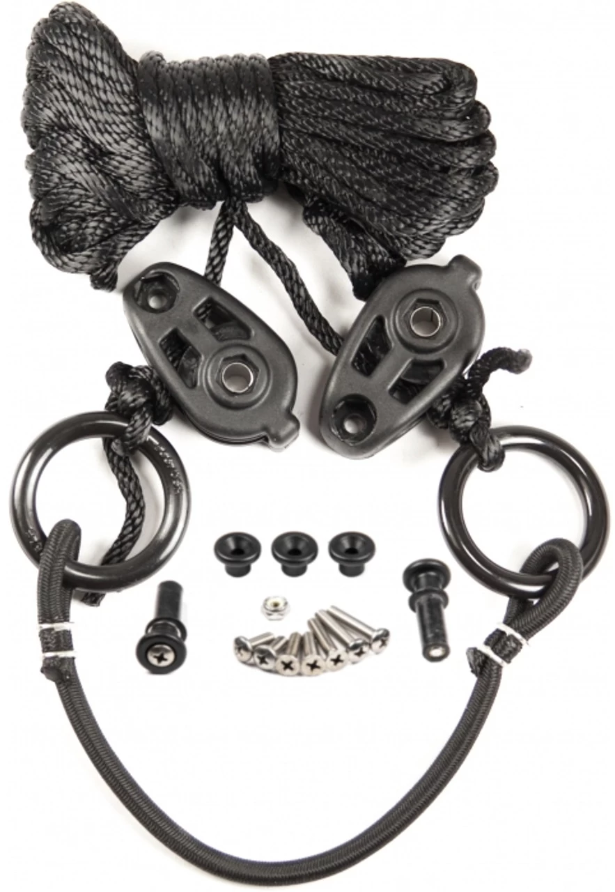 Easily deploy your anchor, drift chute or stake out pole over the side of the cockpit area, then move the attachment position forward or aft to hold your boat in the position desired. Easily sit facing down stream / wind at anchor. Simple pulley system and cleat allows adjustment all along one side of your boat anywhere from bow to stern. Includes the all necessary hardware to install the system on your PA 14, Pa12 and all Hobie and most kayaks.