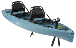 The Mirage Compass Duo is powered by dual MirageDrives with Kick-Up Fins that retract on impact. New for 2021, the Duo is now upgraded to both forward and reverse capabilities with the upgraded MirageDrive 180! Equipped with the MirageDrive 180 and a MirageDrive with Glide Technology, the Duo delivers a smooth and efficient ride for two. The Duo’s sleek hull design maximizes speed and stability, while greatly reducing drag. The cockpit features comfortable, ergonomic seating, 4 Integrated H-Tracks for accessory mounting, and abundant above and below deck storage compartments to house gear for two. The sleek waterline and Kick-Up Rudder system make for an impressively nimble tandem kayak that’s highly responsive, easy to steer and extremely durable. The roomy Compass Duo is simple to use and adventure-ready, making it the ideal choice for water outings with adults, tikes, and furry companions.