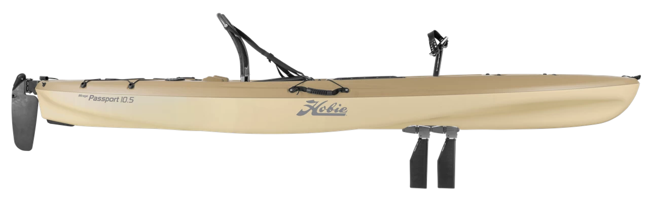 Hobie is world renowned for designing pedal kayaks that are fun and functional. We’ve been at it for over 20 years. This year, we upgraded the Mirage Passport series to the fast and efficient MirageDrive with Glide Technology and Kick-Up Fins. Our patented Kick-Up Fins technology delivers care-free kayaking. Logs, kelp, shallows, rocks? No problem. Our fins automatically “kick up” on impact. We bring you closer to nature and further from the hustle and bustle. The Passport takes you anywhere you want to go with ease and world-class authority. Every feature is designed with your entertainment in mind. Sail open water or fish the flats. We made sure you can do both thanks to the vertical accessory tube and molded in rod holders. Dual mounting tracks keep your accessories within reach while the 8” Twist-n-Seal Hatch will keep them dry. The easy-to-use steering system and simplified version of our twist-and-stow rudder puts navigation at your fingertips and a smile on your face.