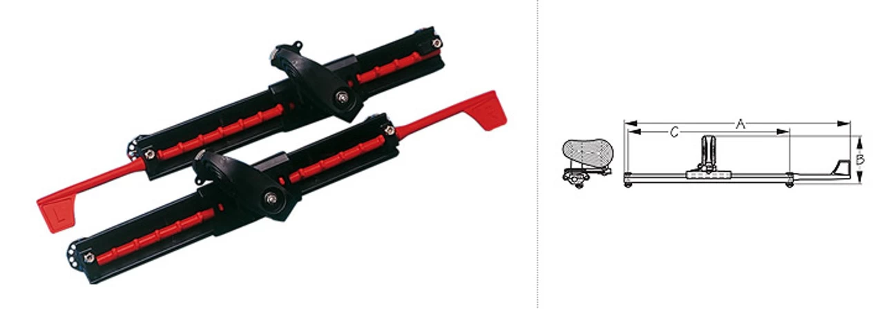 Kayak foot brace with ha rudder control. Red rod pp and fiberglass/nylon. Easy adjusting and self-cleaning. Through hull mount, 14 and 1/2 inches.