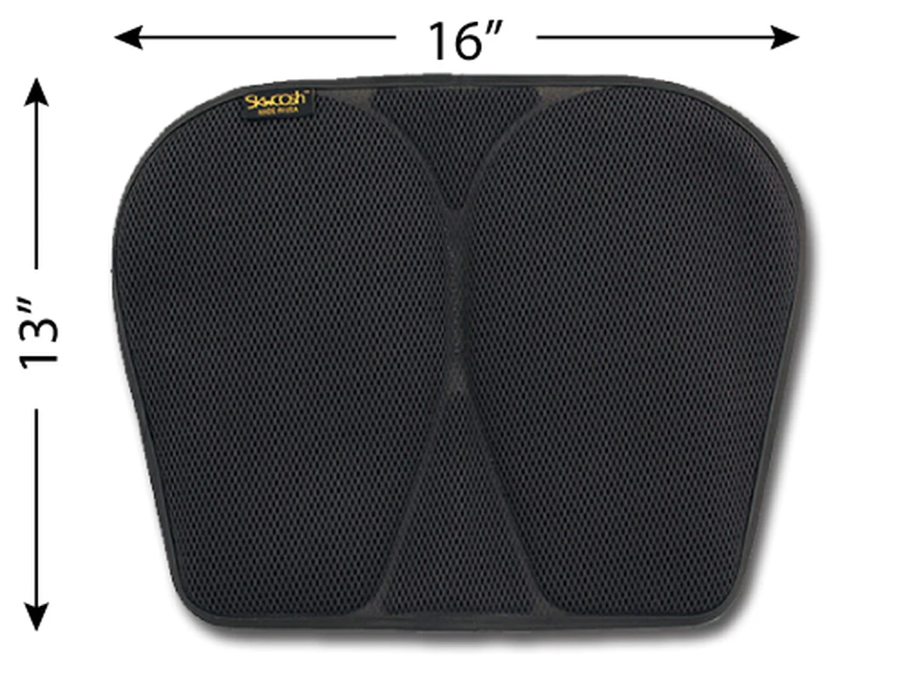 This kayak gel cushion has a breathable mesh top that circulates air under the paddler. It is lightweight, has a low profile and is waterproof. The SKWOOSH™ secret is its medically proven fluidized gel technology that relieves pressure on the “sitz” bones and eliminates numbness. The unique design features a low mesh top fabric for cooler paddling and a super non-skid bottom that keeps the pad from moving even in wet conditions. It fits most kayaks and adds tons of cool comfort when used on factory seats.