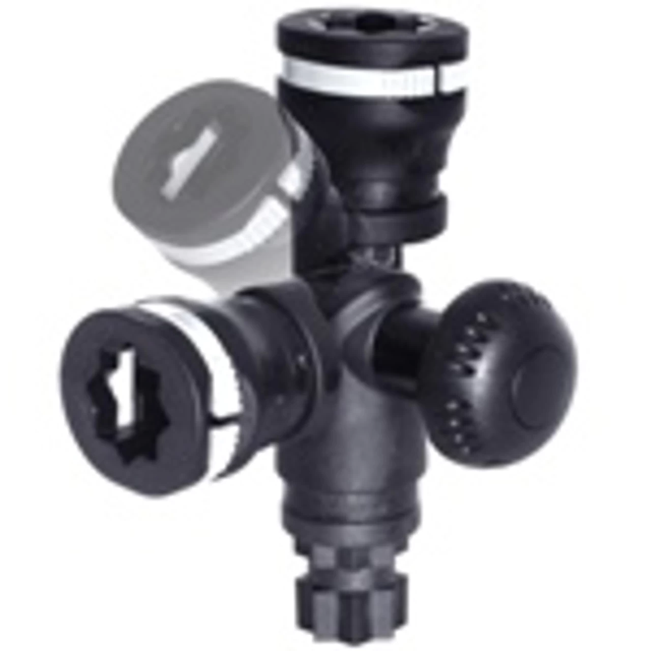 Now, your StarPort mounting system can bend over backwards to help you! Adjustable extenders plug into any StarPort, and have the same star shape on top with a clever little lock. The Adjustable Extender has one pivot that allows full-circle free rotation (under resistance) along the central axis. It also has a central knob to adjust for up to 180° tilt in 15° increments. When coupled with one of RAILBLAZA’s large range of accessories, the Extender is a great addition to help keep hold of your emergency torch or fishfinder, or any number of useful items.