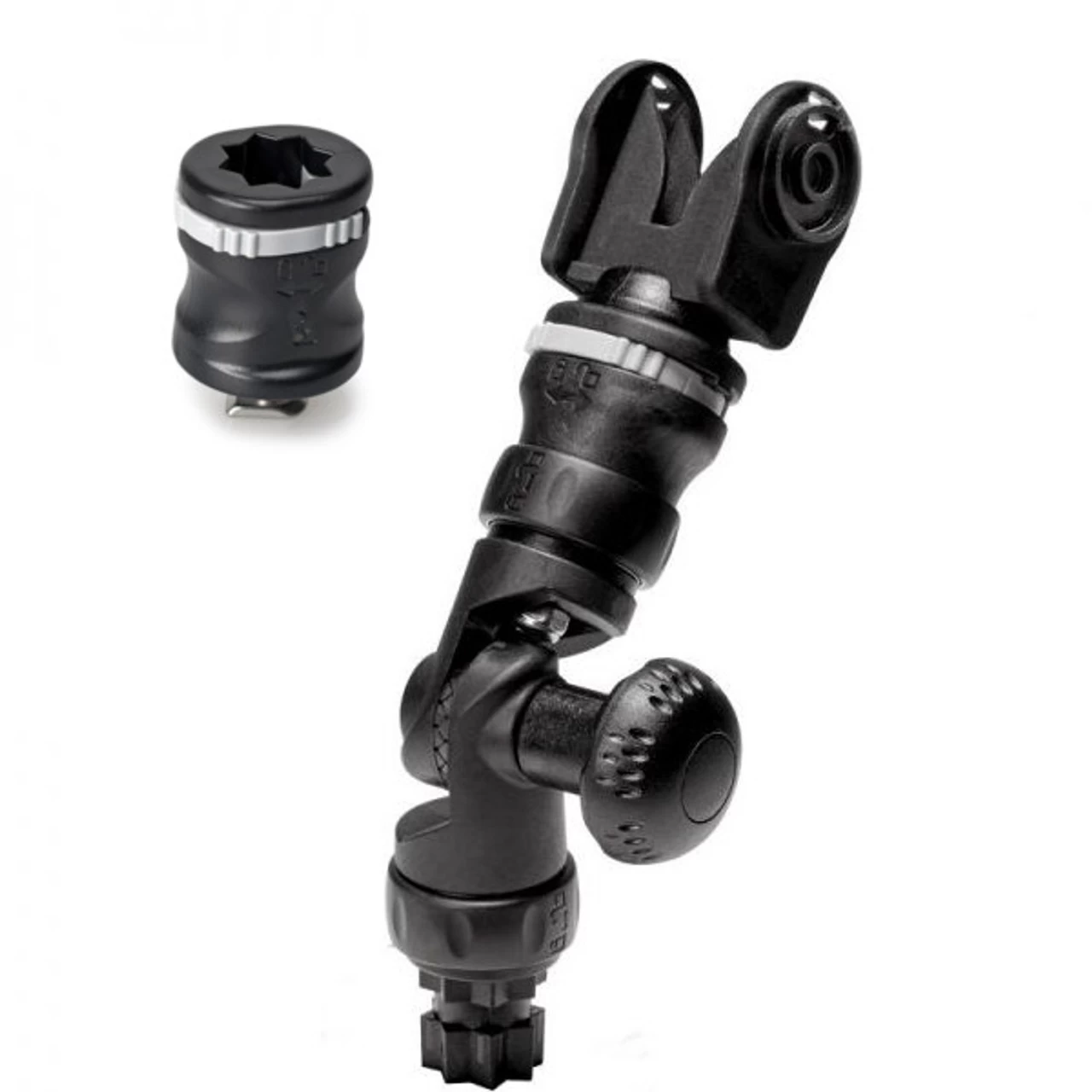 The RAILBLAZA Fish Finder Mount R-Lock Hook 2 is a fish finder mount allowing Lowrance HOOK2 4x and 5x models to become StarPort compatible. Easy to tilt and remove, simply replace the supplied Lowrance mount with the Hook 2 Adaptor to allow single-handed display tilting. All that remains on the deck once it’s removed is a low profile RAILBLAZA mount. This 3 axis mount has friction joints top and bottom featuring R-Lock lockable joints. The center joint is fully adjustable in 15-degree increments. Will take fish finders up to 3.3 lb. Mount on an angled face and have your display level! Also with the correct RAILBLAZA mount, you can mount your fish finder on a rail, or inflatable tube! Use the Fish Finder Mount R-Lock Hook 2 with any RAILBLAZA StarPort.