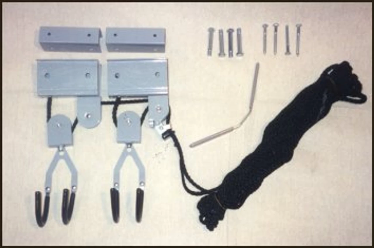 Stores bicycles, canoes, deck furniture, ladders, kayaks and more. Raises and lowers loads in seconds. Extra storage in unused areas. Easy one person operation. Versatile to work on open rafters or finished ceiling. Use it to get your ladder up and out of the way. Great for off season storage.