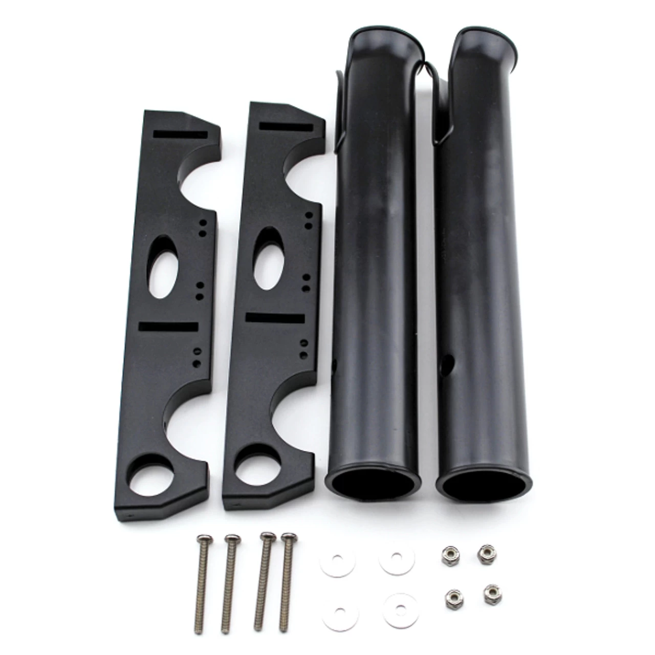 Milk crates, buckets, and coolers provide interior storage area on the deck of the kayak, canoe, or paddleboard, however, these storage methods do not have any exterior storage or rod holder features. Rig the exterior of your preferred storage area with the YakGear Build A Crate Kits to fully maximize all storage possibilities. These BuildACrate Rod Holder Packages come in three styles: Single, Double, and Triple. These kits provide any paddler with a rod or anchor holder that easily attaches to any storage container with inside access. On top of offering rod or anchor holders, these kits offer additional storage slots for pliers, knives, and lures on the mounting brackets. This allows the paddler to efficiently take advantage of storage space, in a sport where extra gear is at a premium and free space is hard to find. All rod holders are 12 inches long and feature trigger cutouts to properly rest and secure reels. As always, this complete kit comes with all stainless steel installation hardware, installation instructions, and rigging tips from YakGear. Waterproof silicone recommended but not included.