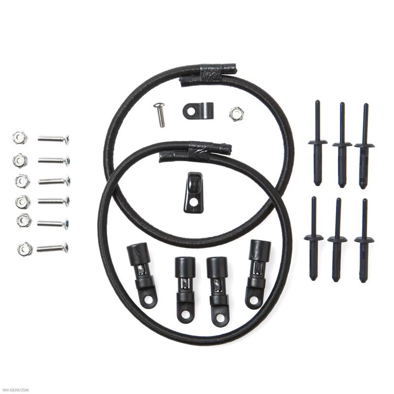 Add or replace paddle holders with the YakGear Paddle Keeper Kit. While there are many different ways to mount and store paddles on kayaks and canoes, bungee paddle keepers are by far the most versatile. ¼ inch bungee is mounted with terminal ends and a J-hook to form a pressure based bungee clamp for paddles, fishing poles, and anchor sticks. This kit comes with two paddle keepers, so the versatility and practicality of the product will not be limited to one side of the kayak or canoe. As always, this complete kit comes with all stainless steel installation hardware, installation instructions, and rigging tips from YakGear. Waterproof silicone recommended, but not included.